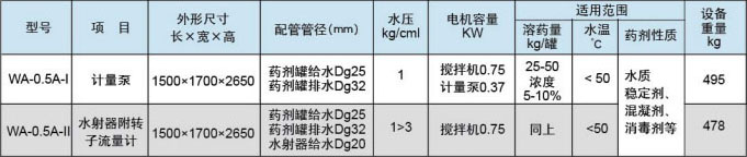 3. 計量裝置及投加方式:JY系列中有兩種:(1)是采用計量泵投加。(2)用水射器投加,轉子流量計計量。如泵前投加,水射器可以不用,水射器需要壓投入在2kg/cm