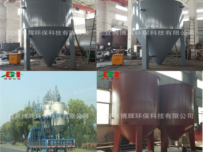 1、本機在截錐段設置環(huán)形支座,在截錐底部設置圓形平面支撐,設備就位后與預埋鐵對焊。
