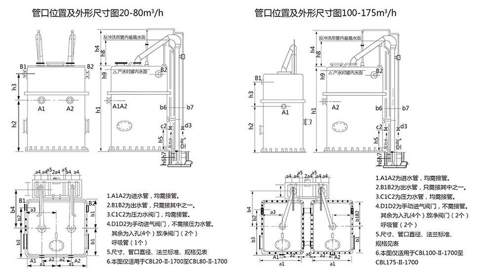 無(wú)閥過(guò)濾器中設(shè)置的進(jìn)水分配水箱和U形進(jìn)水管是為了避免空氣吸入池內(nèi),因?yàn)楫?dāng)有空氣吸入時(shí),在運(yùn)行后期可能形不成虹吸,而且如不設(shè)此U形管,則在反洗后期,進(jìn)水管就成了虹吸破壞管。